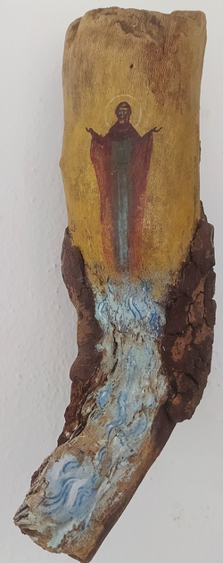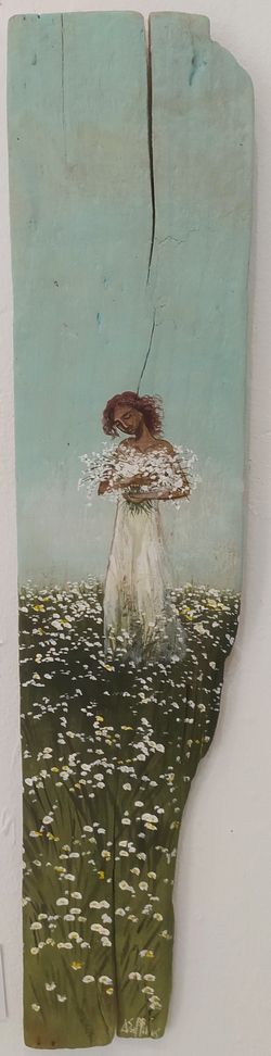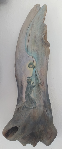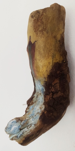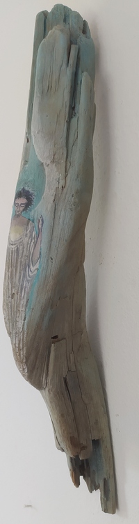 My sea-findings are hand-painted with acrylic paints and markers. Their size and weight vary and they are offered either on metal stands or as small collections in boxes, or hung directly on the wall (wood). If you would like any clarification, please contact me.