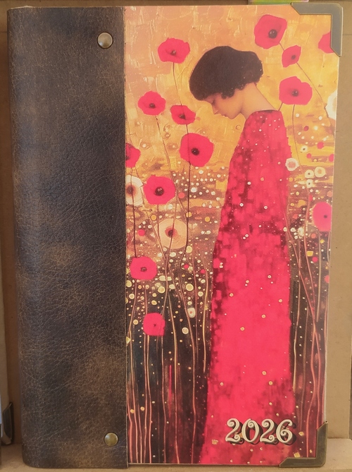 Ημερήσιο ημερολόγιο (σελίδα ανά ημέρα), με ετήσιο, εβδομαδιαίο και μηνιαίο πλάνο, εορτολόγιο και μικρό σημειωματάριο. Έχει χοντρό κραφτ εξώφυλλο, επενδυμένο με δερματίνη, εκτυπωμένες εικόνες και μεταλλικά πρόσθετα.