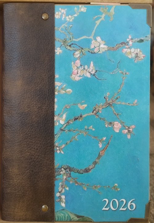 Ημερήσιο ημερολόγιο (σελίδα ανά ημέρα), με ετήσιο, εβδομαδιαίο και μηνιαίο πλάνο, εορτολόγιο και μικρό σημειωματάριο. Έχει χοντρό κραφτ εξώφυλλο, επενδυμένο με δερματίνη, εκτυπωμένες εικόνες και μεταλλικά διακοσμητικά. (Διαστάσεις: 15 Χ 21 εκ.)